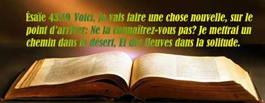 Esaie 43:19 dit: : « Voici, Je vais faire une chose nouvelle chose,